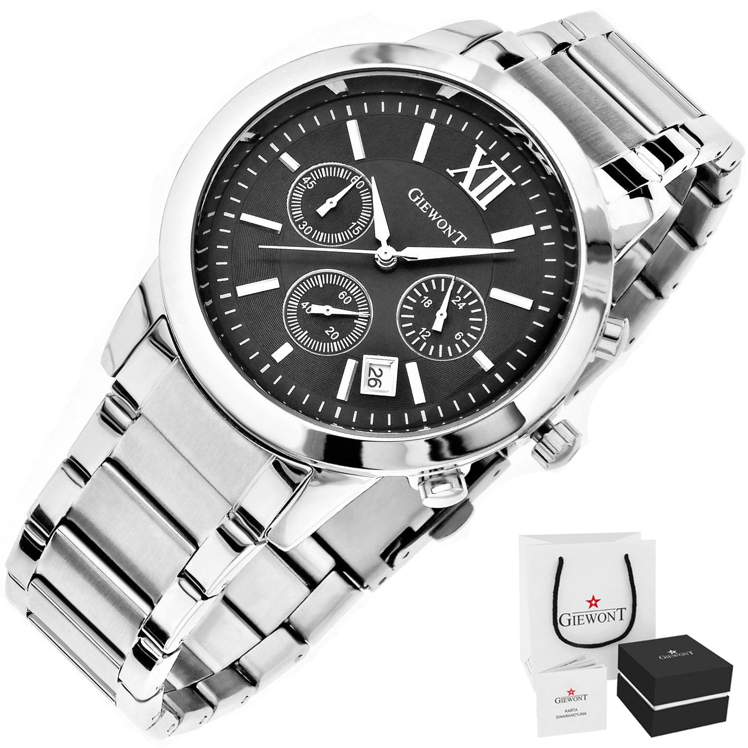 W zestawie otrzymasz: - Oryginalny zegarek marki Giewont - Oryginalne pudełko - Firmowa torebka prezentowa - Instrukcja obsługi z kartą gwarancyjną w języku polskim