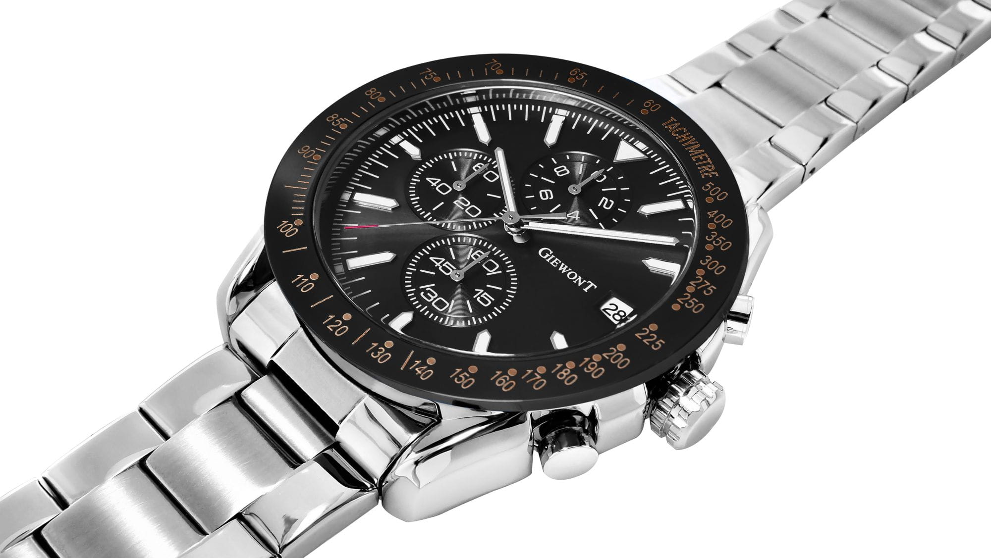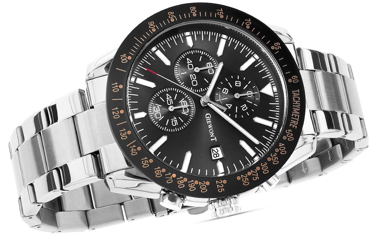 | Giewont GW8620 wyposażony jest w działające chronografy: minut stopera, sekund stopera oraz tryb czasu 24-godzinnego. Dodatkowo posiada datownik dni miesiąca. |